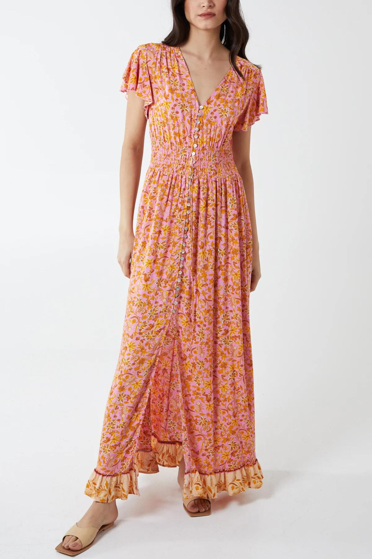 Floral Button Down Dress Pink & Orange